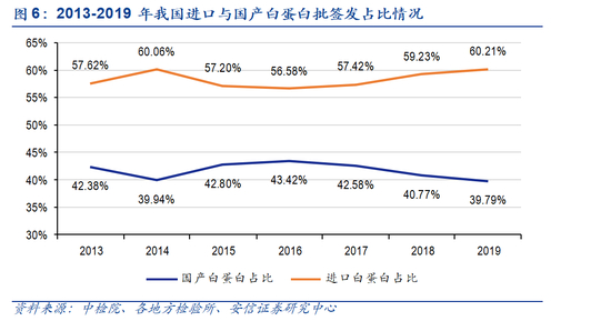 从批签发占比角度来看,2013 年以来,进口与国产白蛋白的批签发占比虽略有波动,但整体基本维持在 6:4 的比例。在行业不发生明显变化的情况下,预计我国白蛋白的这一批签发格局有望继续保持。
