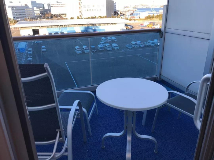 考特夫妇的阳台相对开阔,能看到横滨附近的海域和港口。自隔离起,他们密切关注着运载车辆的动向。有两个出口正在被张罗起来,蓝色的幕布支撑起两条长长的走廊。即便如此,14 天的隔离还是得数着日子熬过去。