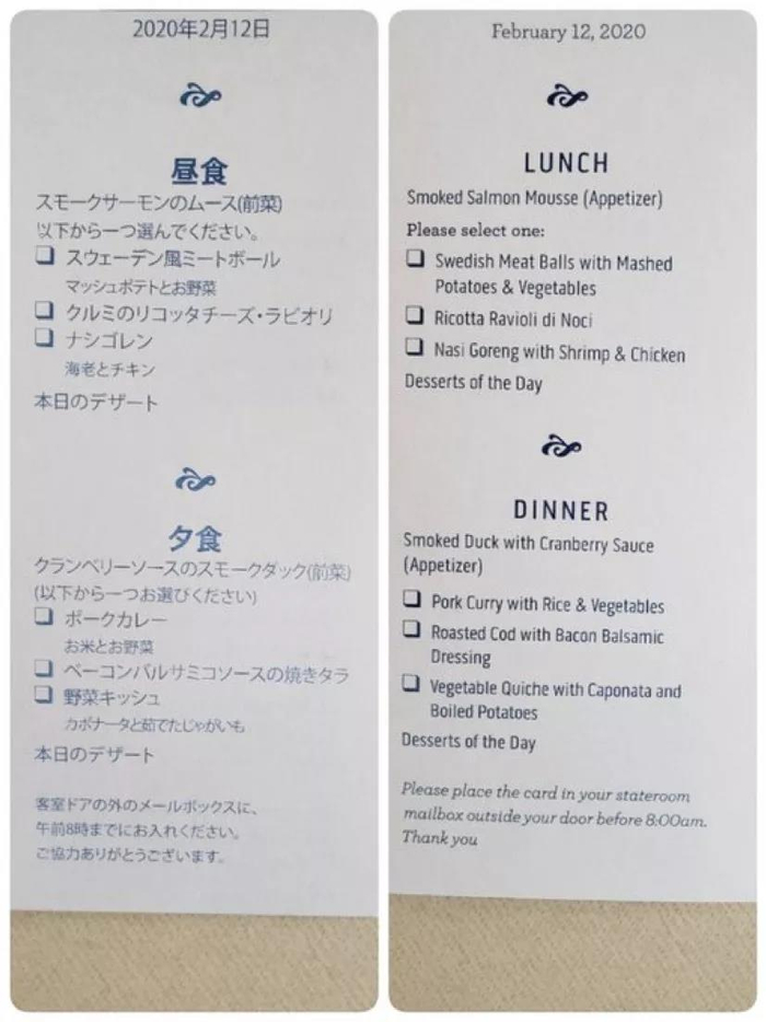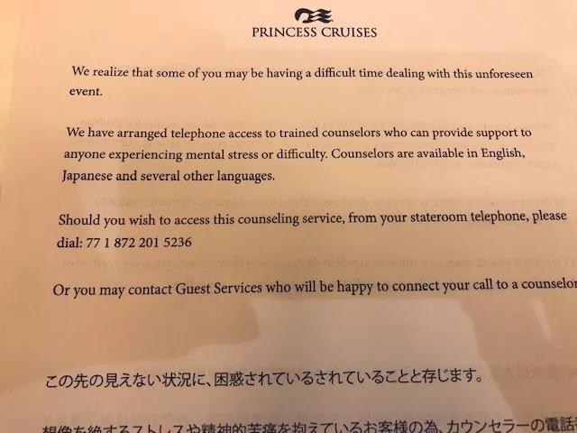 为了平复乘客心情,船上已开始提供电话心理咨询,但大卫依旧告诉网友,他和妻子吃得越来越少。有日本乘客开始抱怨,目前船上大多提供美式餐食,虽然丰富,但他们想要清淡一些的日式餐食。