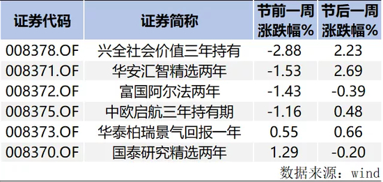 具体来说,节后首周兴全社会价值、华安汇智涨幅超过2%;节前一周,兴全社会价值跌幅接近2.9%。
