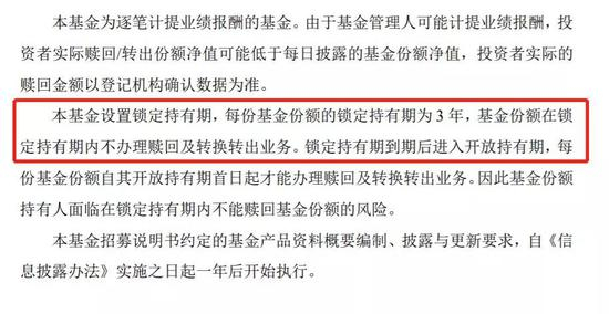 值得一提的是,浮动管理费率基金均采用“持有期”的概念。中欧启航招募说明书显示,该基金设置锁定持有期,每份基金份额的锁定持有期为3年,基金份额在锁定持有期内不办理赎回及转换转出业务。