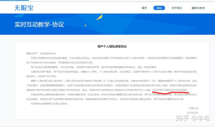无限宝的隐私协议,并没有提供很好的用户信息保护承诺。
