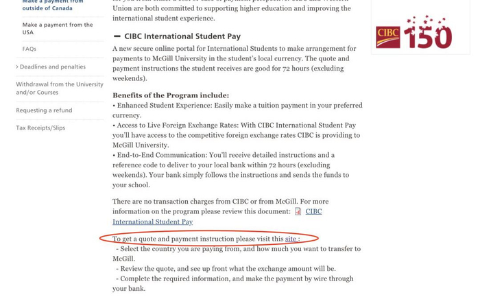 特色服务:可通过CIBC留学缴费网或在学校官网缴费页面选择“CIBC International Student Pay”,并使用银联卡支付。按当日汇率转换为人民币计算。