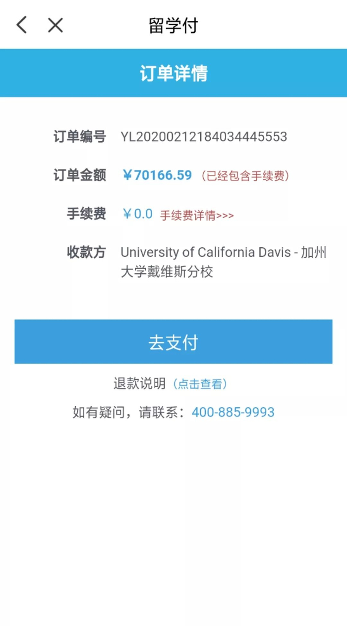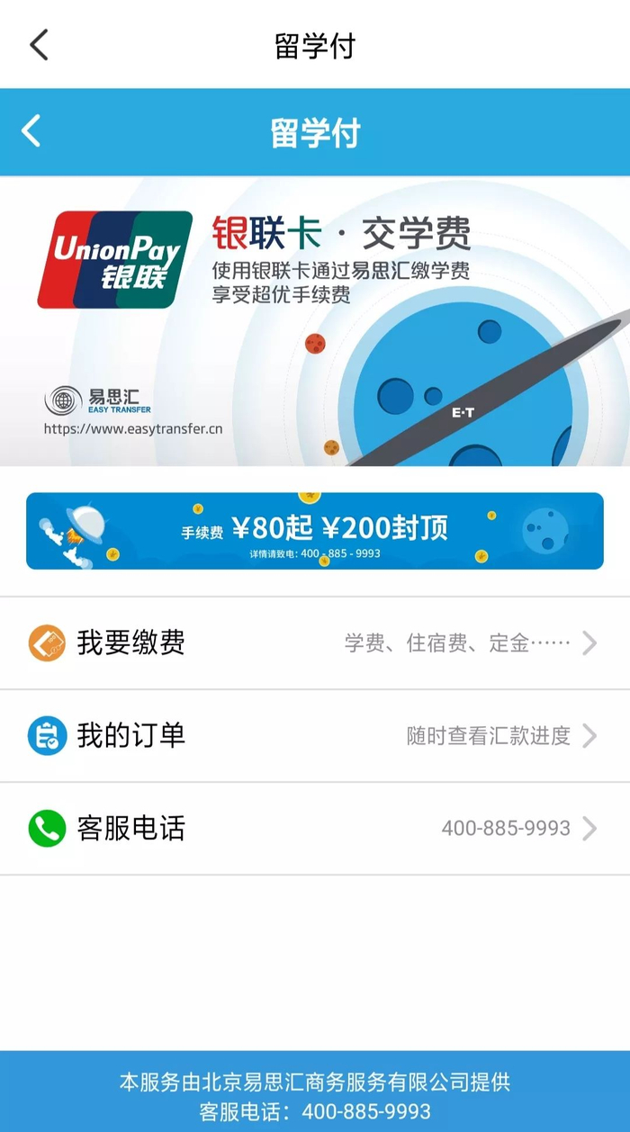 特色服务:支持多类费用(学费、住宿费、签证费等)的缴纳,按实时汇率计算。使用银联卡成功支付后,可以随时查看汇款进度,最快一个工作日可到账。