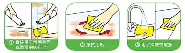 1. 使用前请仔细阅读瓶身说明,未提及的表面请在不起眼的角落先谨慎测试后,再使用。