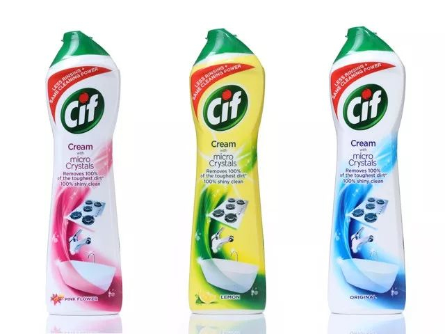 Cif清洁乳用了阴离子 + 非离子2种表面活性剂,结合起来,去污更有效。