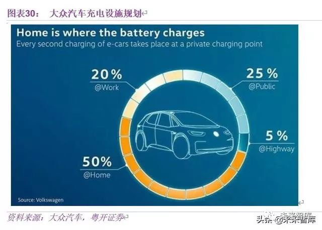 2019 年在对媒体的公开上又提出,2023 年以前,将投资 300 亿欧元专用于电动化,2028 年前推出的纯电动车型要达到 70 款,电动车的累计产量要达到 2200 万辆,到 2030年,欧洲与中国生产的大众汽车中电动车占比要超过 40%。