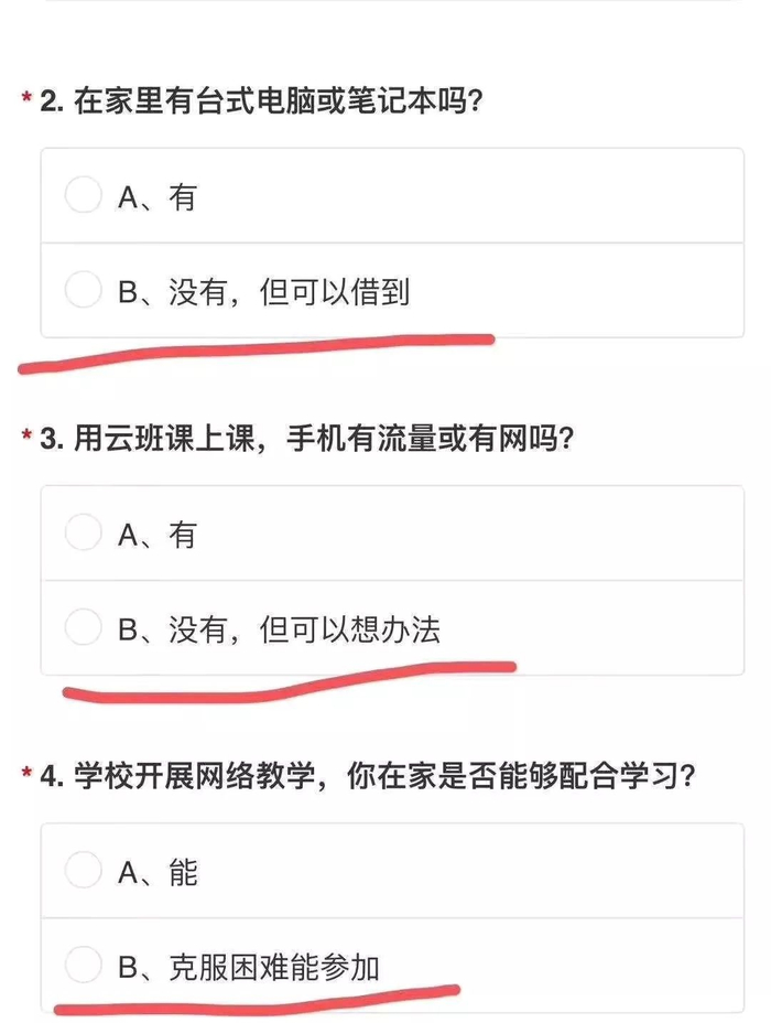 用田老师的话来讲:“布置作业一时爽,检查作业火葬场。现在每天批作业都有高考阅卷的既视感。很多家长对于直播平台也不是很熟悉,就微信群、各种软件来回切换,感觉再这样下去,家长、孩子、老师都要去眼科排队了。”