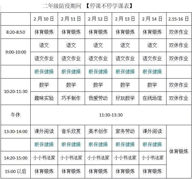 她还给八妹提供了孩子上课的课表,看过才发现,原来网上那些体育锻炼打卡也不是假的,还有眼保健操时间也被安排得明明白白!可真是德智体美劳全面发展。