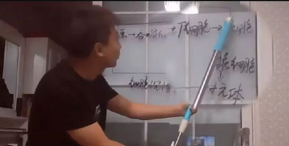 还有老师干脆用家里厕所玻璃门做黑板、用拖把当教具的。