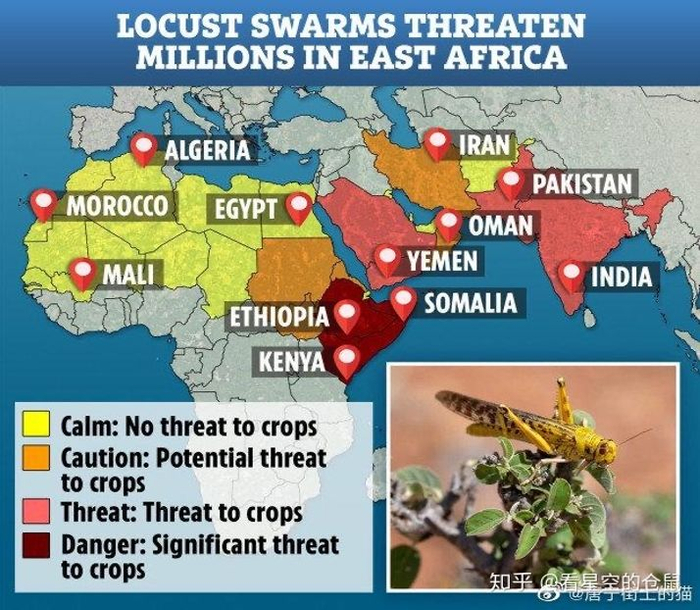那么,且不论蝗灾是否会到中国,它对全球的粮食行业又会造成怎样的威胁?