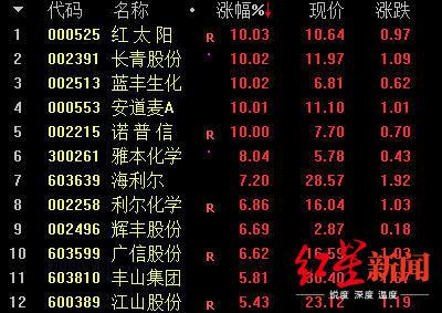 别觉得奇怪,这可是正经的券商研究报告。而且,生物农药板块个股今天(2月17日)大爆发。截至红星新闻发稿,红太阳、长青股份、蓝丰生化、安道麦A、诺普信等集体涨停,海利尔、广信股份、利尔化学、丰山集团、江山股份也涨幅较大。