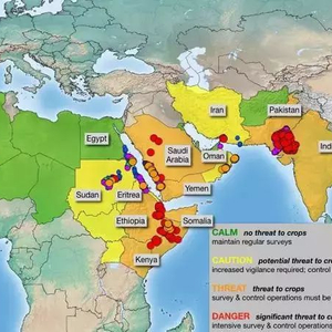 由于破坏力巨大,沙漠蝗虫对受害国的粮食安全构成重大威胁,对贫困地区和生态脆弱区尤其严重。