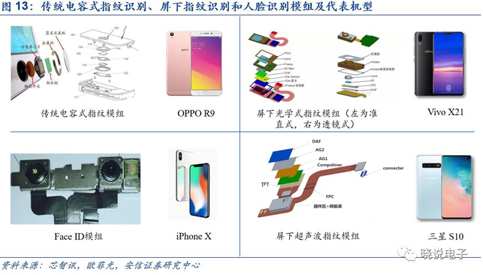 2018年华为、OPPO、小米和三星相继推出搭载屏下指纹的手机产品;2018年苹果发布iPhone X,首次以人脸识别取代指纹识别,开启刷脸时代。