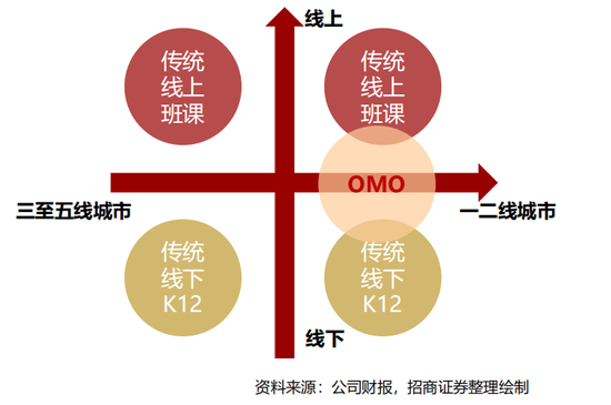 • 在线教育:以新东方在线上市公司为主体,K12业务中的东方优播同样为OMO模式,即通过线下获客导流,线上进行网课教授,同时结合线下师生见面、家长互动活动。