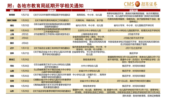 ◆ 学校端:开学时间普遍延迟到2月底或3月初,此前不正式授课,开学后统一授课