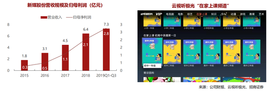 • 云视听极光联手优质资源,上线“在家上课”计划。云视听合作30家优质机构,100+门类课程,20000分钟+精品内容,1000+场在线直播公开课,并携手企鹅辅导邀请众多一线教师在线答疑。在外延并购方面,收购教育相关公司。二级全资子公司广东南新金控投资有限公司收购圣剑网络10.0045%股份。圣剑网络从事智能电视产品的研发与运营,旗下产品包括游戏平台、乐学星空等,其中“乐学星空”针对 3-12岁学龄儿童打造电视线上互动教育产品。