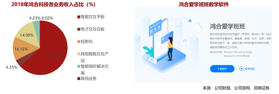 • 自研平台“鸿合空中课堂”+钉钉合作“鸿合钉钉课堂”同时上线,硬件软件齐发力。旗下两大平台“鸿合钉钉课堂”和自研直播平台“鸿合空中课堂”都在大规模测试,预计到开学后正式向市场推广。嵌入于钉钉平台中的鸿合科技旗下应用“爱学班班”,提供了完善的教学功能及数字教学资源,可帮助老师实现“在线备课、空中课堂直播授课和课后作业复习”。面向钉钉无法覆盖的区域,公司能够直接和校方联系达成合作。近期线上课程直播用户快速增长,目前达到同时在线2万人。