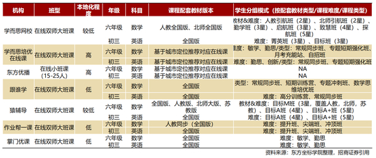 • 内容端:教材本地化程度有待提升。大部分在线班课均为全国采用通用版教材;学而思网校以及猿辅导在小学数学中覆盖人教,北师,苏教等不同版本,但相对有限,教学内容的本地化为今后内容升级方向之一。