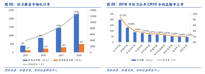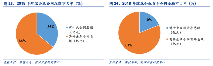 环卫服务市场集中度较低,龙头市占率有望提升。我国环卫行业整体较为分散,呈现出参与者众多、集中度低的现象。2018年环卫企业CR10合同金额和首年金额市占率分别为36%、19%。还有较大提升空空间。