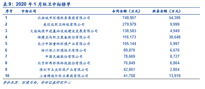 防控疫情,农村垃圾处理有望带动环卫需求。春节期间的农村垃圾暴增也是疫情最难防控的区域,为保障农村垃圾分类及时清运配合政府防控疫情发展,各地环卫公司根据实际情况,安排干湿垃圾收集车上户收集、垃圾场地消毒、小钩臂车定点清运、电动三轮车快速保洁等,解决了农村生活垃圾堆积。如江西省住房和城乡建设厅等部门的统一部署下,全省各地农村环卫工人努力克服春节期间返乡人员多、垃圾产生量大,疫情防控口罩、消毒液等用品紧缺,通村道路不畅等实际困难,普遍加大了农村垃圾清运频率。又如浙江各地农村于1月23日起加强农村生活垃圾处理清运工作,受回乡人员多,农村生活垃圾的产量增加,为农村生活垃圾运输及转运防疫工作增加难度。农村垃圾处理需求增加有望带动环卫业务增长。