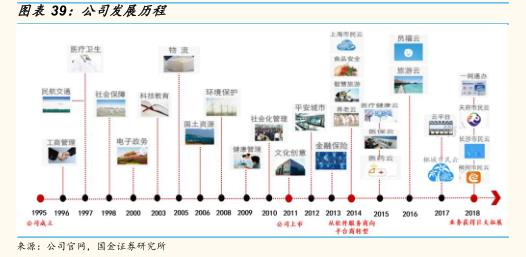 公司自 1995 年成立以来一直专注于城市信息化领域的建设,是国内较早进入该领域的综合性服务厂商。经过 23 年的持续发展,公司已实现在医疗健康、政务服务、社会保障、市场监管、平安城市和金融保险等细分领域的深度卡位,并依托于市民云、健康云等城市公共平台实现了数据价值的有效利用。