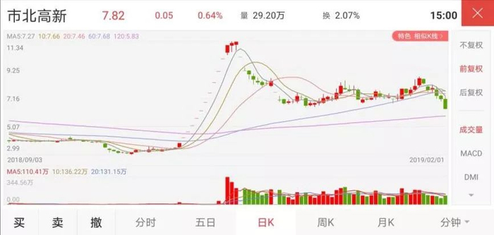 以市北高新为例。2018年11月,创投概念股市北高新股价狂揽12连板。但开板后不到10个交易日,市北高新股价已回撤超过25%。