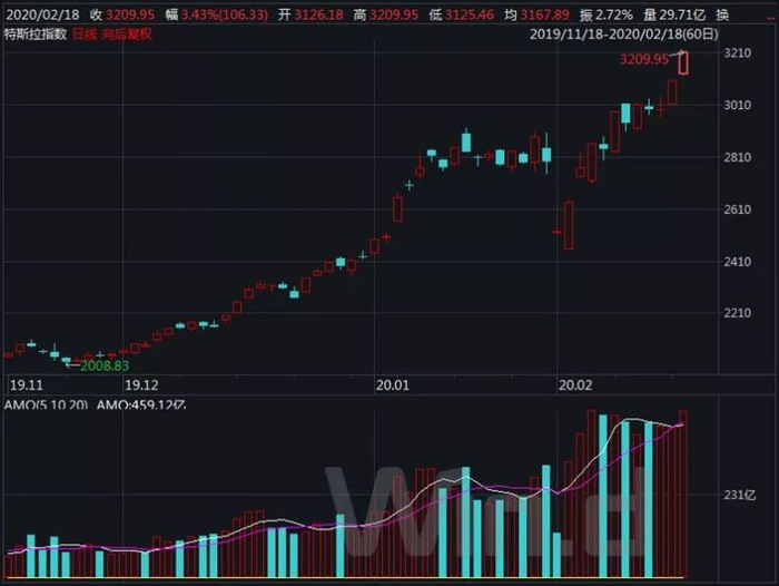 Wind特斯拉指数今年以来累计涨幅已超过30%,特别是在2月4日指数触及反弹以来,Wind特斯拉指数涨幅高达26%。