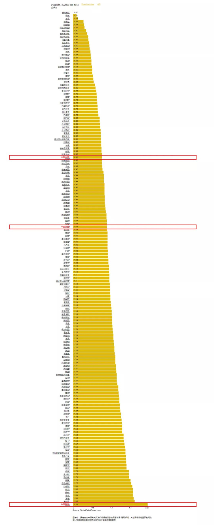 2月10日全球各地区油价排行榜(点击可查看大图)