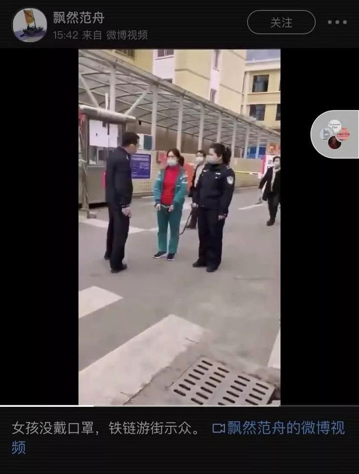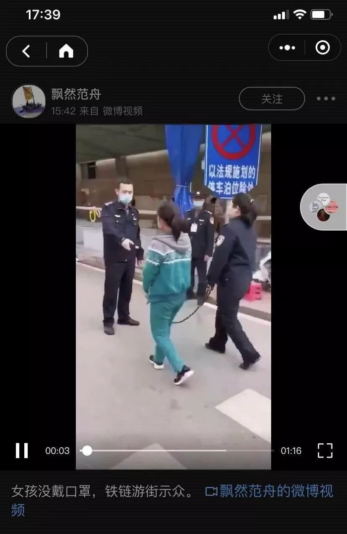 此前,有一个“女孩没戴口罩,铁链游街示众”的视频也广为流传。