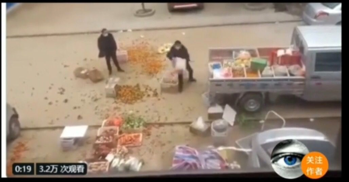 就算有菜贩卖菜,也被人无端砸烂,任凭摊主如何苦求均不得。