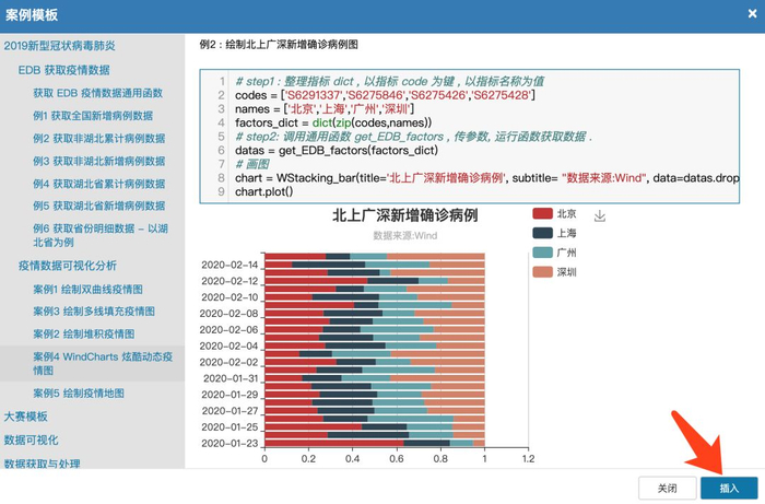 2、然后会出现如下页面,选择你需要的案例,点击插入即可: