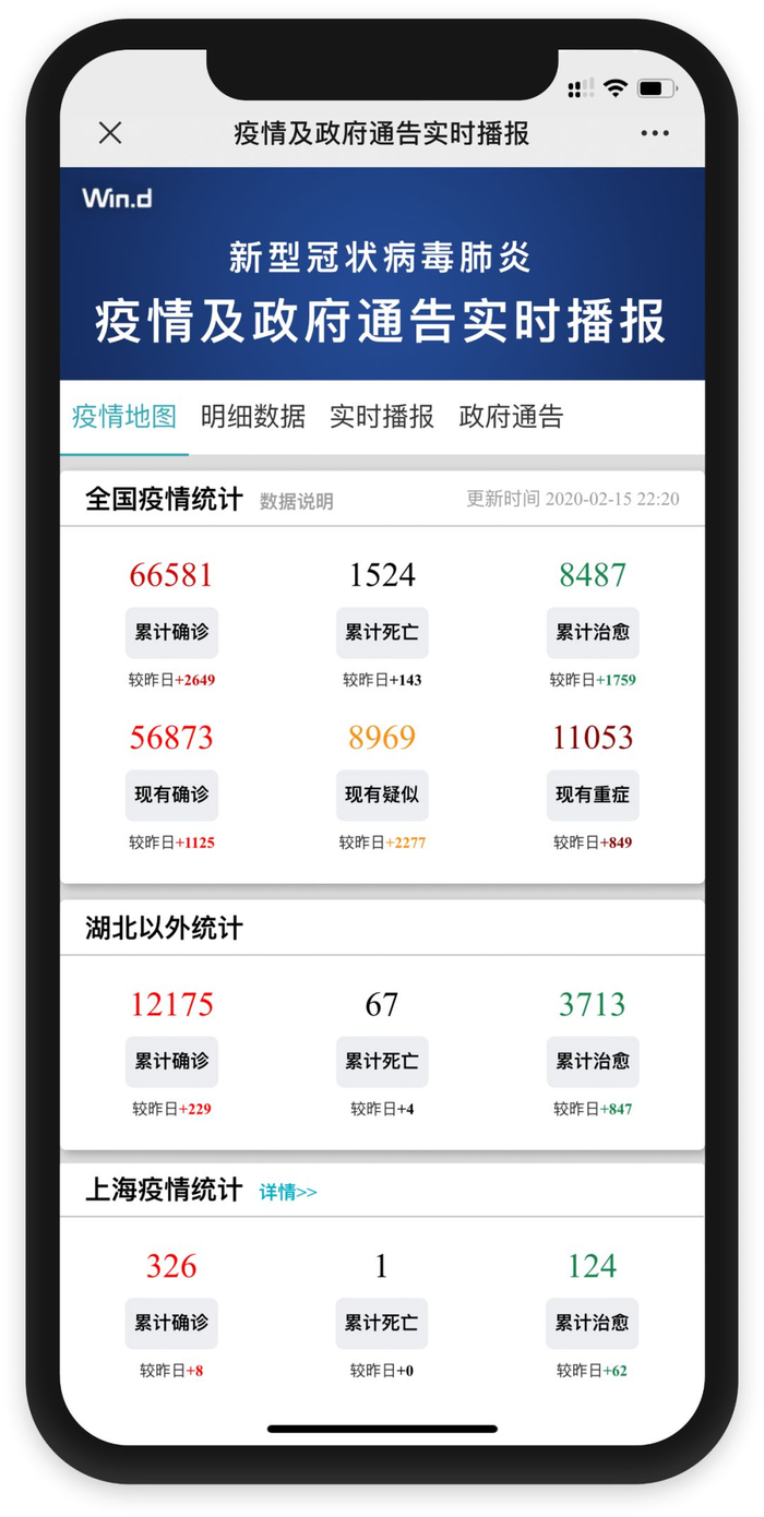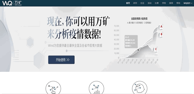 旗下高端量化云平台2020年,“新型冠状病毒肺炎”疫情牵动着数亿华夏儿女的心!万得作为中国大陆领先的金融数据、信息和软件服务企业,迅速组织相关人员日夜奋战,第一时间在Wind金融终端移动端和电脑端同步上线了「疫情信息地图」。且我们为用户提供了一手的疫情数据,其主要来自国家卫健委、各省市区卫健委等官方渠道,以确保疫情数据:权威、准确、及时。