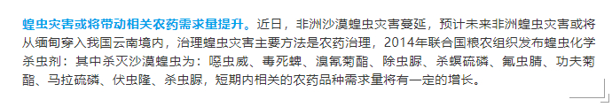 西南证券也发布了研报,认为利好杀虫板块。
