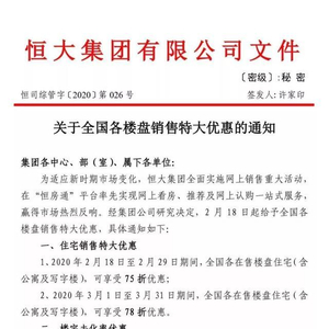 近日,“恒大7.5折卖房”的消息登上各种热搜。2月18日至2月29日期间,恒大全国各在售楼盘住宅(含公寓及写字楼)实施7.5折的“特大优惠”,共有613个楼盘参与这项优惠。