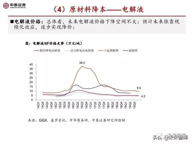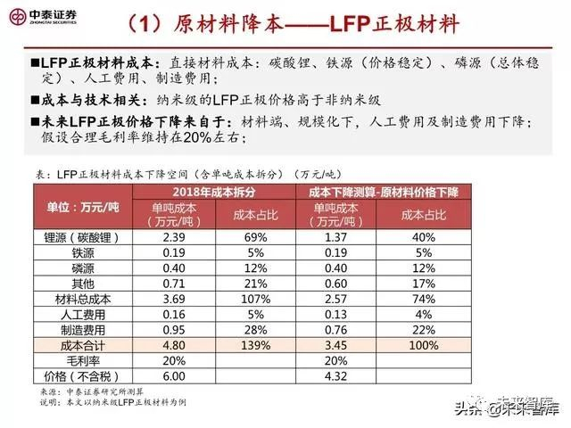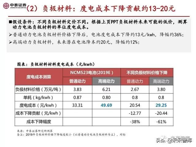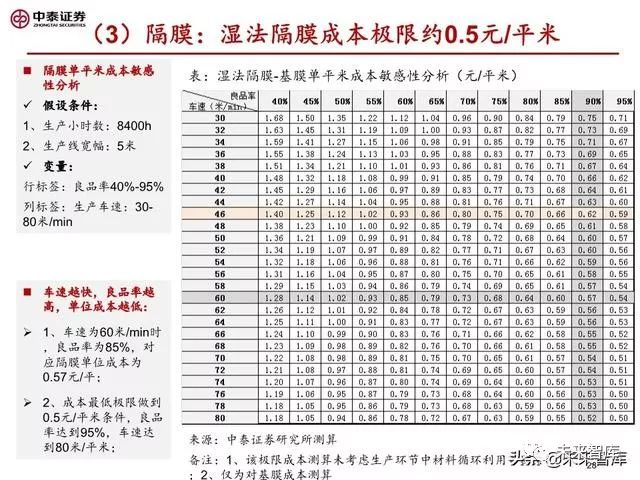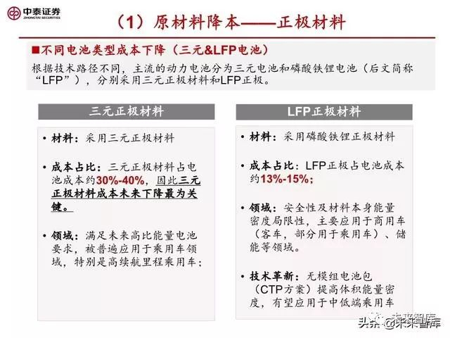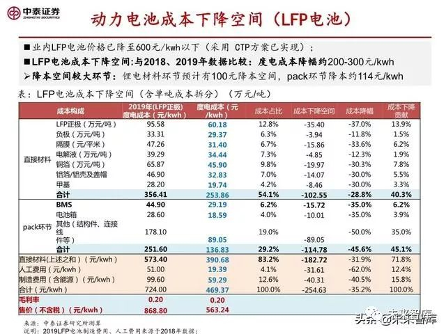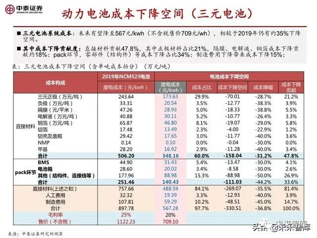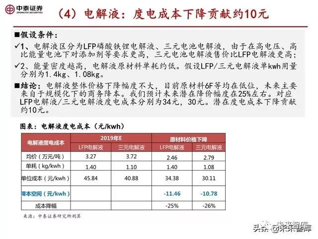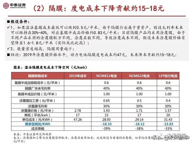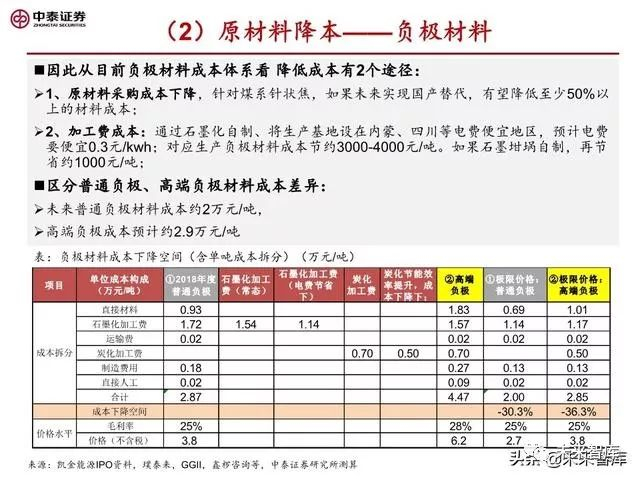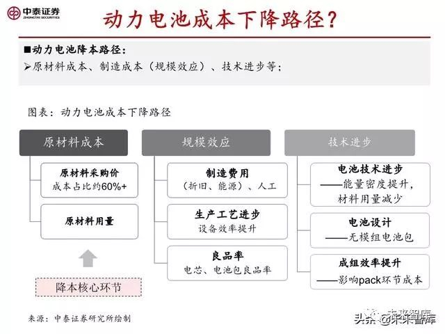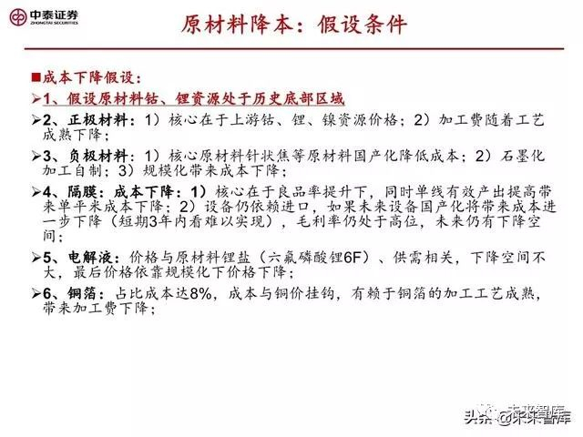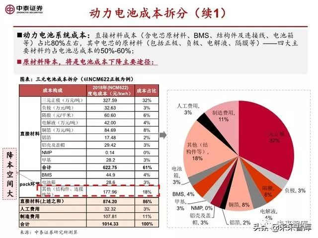 1)电芯/模组:锂电材料成本、制造费用、人工等; (对锂电池原材料,正极、负极、隔膜、电解液、铜箔等降本进行分析) 。