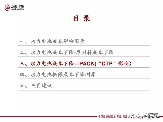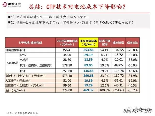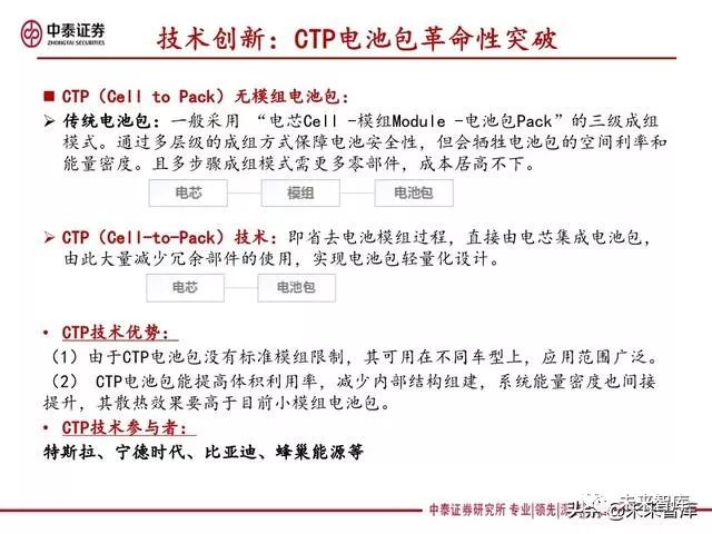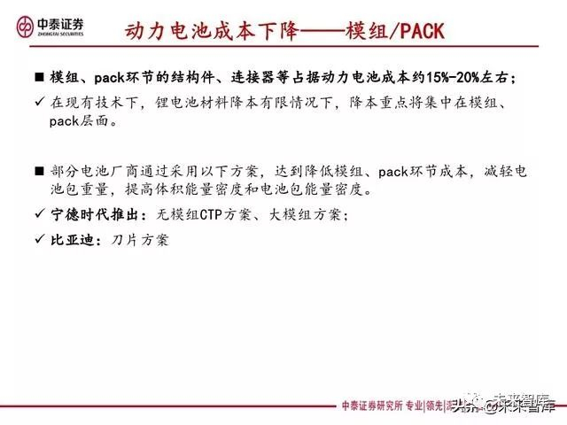2)电池包:CTP技术创新,对电池成本下降 (重点解析CTP和刀片技术,二者对比,及其对电池成本下降影响)。
