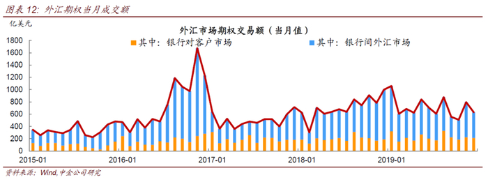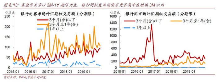2)外汇期权成交以银行间批发市场为主,期限多集中在短期