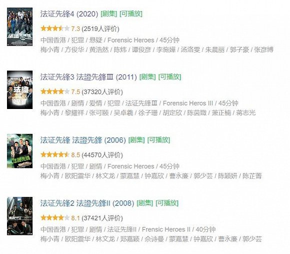 2月17日,《法证先锋》系列最新作《法证先锋4》终于上线了视频平台,首日首集放出后豆瓣迅速开分,目前7.3分的豆瓣评分为法证先锋全系列最低。除了TVB和法证先锋系列的忠粉自发推荐,也并没有看到自身内容上有成为爆款的潜力。
