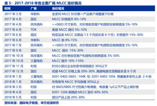 1)供需失衡导致,背后的推动因素来自于产业结构性转移。日系被动元器件巨头淡出消费类低利润市场,朝着汽车、工控、医疗等高利润领域转移。而全球第二大厂商韩国三星电机因受到2016年Note 7爆炸事故的拖累,MLCC停止了生产三个月,且后续导致其MLCC品质管理加强,交货周期拉长,进一步加剧了对市场供应的冲击。中低端市场缺口由原厂、代理商逐级向下延伸,缺口不断加大。台湾和大陆厂商难以在短期内填补产能空缺,导致价格大涨且台系原厂领涨。