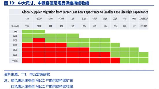 产能调整导致常规品供给出现缺口,部分型号未来供给紧张。虽然在日韩企业退出常规产能的同时,大陆和台系企业在相应的扩充常规品产能。但受限于原先产能规模上的差距,中大尺寸、低容值的常规品实际的供给处于明显收缩状态。从应用端来看,智能家电等应用集中在0805、0603、0402和0201,工控集中在1206、0804、0603等中大尺寸。这些领域对于中大尺寸产品的需求是刚需,0603及以上尺寸的产品在需求不断扩容的情况下仍然占据35%以上份额。预计未来部分0402、以及0603、0805以上的中大尺寸常规品供给或将出现一定缺口。