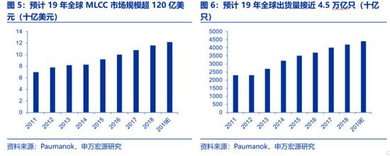 市场规模伴随下游终端升级稳步提升,2019年预计超120亿美元。作为电子产品的必备元件,MLCC的需求随着下游应用的不断拓展和升级,整体呈现稳步增长态势。从最初的家电、到PC再到智能手机,下游终端的发展是MLCC市场的核心驱动力。根据Paumanok数据,预计全球出货量将从2011年的2.3万亿只增长至19年接近4.5万亿只,19年市场规模将超120亿美元。