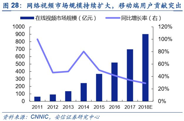 发展现状:1)市场规模不断扩大:文娱产业固定投资完成额在第三产业中的比例逐年上涨,2017 年已达 8731.88 亿元。网络视频市场规模持续扩大,预计 2018 年整个在线 视频的市场规模将达到 902.4 亿元,其中移动端用户贡献突出。2016 年,中国也已经 超越美国成为全球第一大游戏市场,以精品 IP 为核心的影游联动模式受到市场给予的正向反馈。2)内容供给关注女性向:2017 年 12 月,叠纸科技的《恋与制作人》上线 以来迅速引爆,以人设和剧情为核心,营造细腻的恋爱体验,深受女性消费者喜爱。据 《2016 年中国移动游戏行业发展报告》,2016 年中国游戏玩家男女比例为 51:49,而 现象级手游《阴阳师》和《王者荣耀》两款游戏中女性玩家的平均占比也达到了 50%左右,女性游戏市场发展潜力不容忽视。