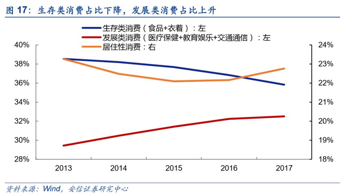 消费升级总趋势:生存类消费下降,发展类消费上升