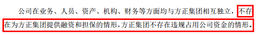 为避免风险传导,方正集团旗下6家上市公司火速公告与控股股东“在业务、人员、资产、机构、财务等方面均相互独立”,其中部分强调“不存在为方正集团提供融资和担保的情形,方正集团不存在违规占用公司资金的情形。”