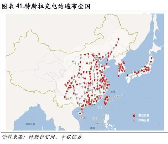而特斯拉在 2019年 3月发布超级充电站 V3.0,将提供额定 200kW、峰值 250kW的充电功率。以 Model 3长续航版为例,在最大充电功率状态下,5分钟所充电量可行驶约 120公里,约 15分钟即可将电量 冲到 80%,理想状态下用户平均充电时间约可减少 50%。
