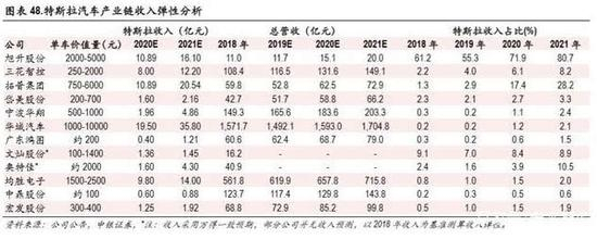 配套特斯拉收入弹性测算