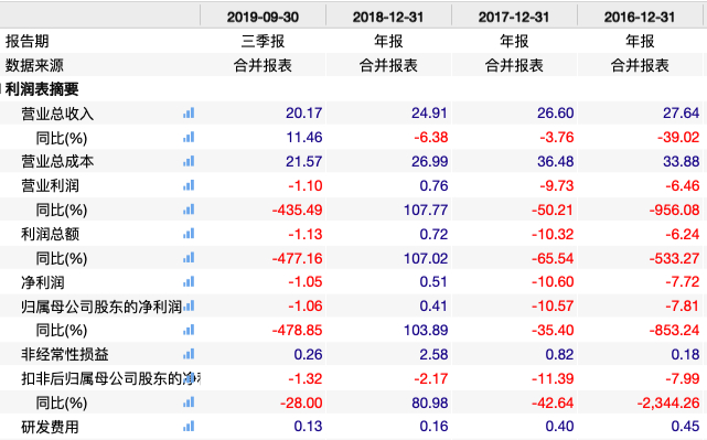 事实上,虽然贝因美成功摘星摘帽,但其经营业绩并未持续好转。据贝因美2019年三季报显示,其前三季度实现营业收入20.17亿元,同比增长11.46%;但归母净利润为亏损1.06亿元,同比大幅下降478.85%;扣非归母净利润为亏损1.32亿元,同比下降28%;净资产也进一步下降至16.85亿元。