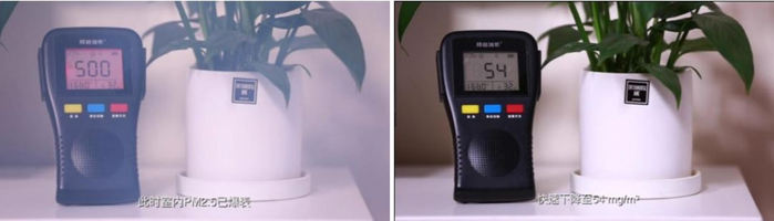 家居环境主要有两大污染源:一是室内装修带来的甲醛和TVOC(有害物质),另一个则是开窗通风时从室外进入的PM2.5等污染物,该挑战实验通过对这几个要素的模拟和控制,测试格力新风空调的空气净化能力。