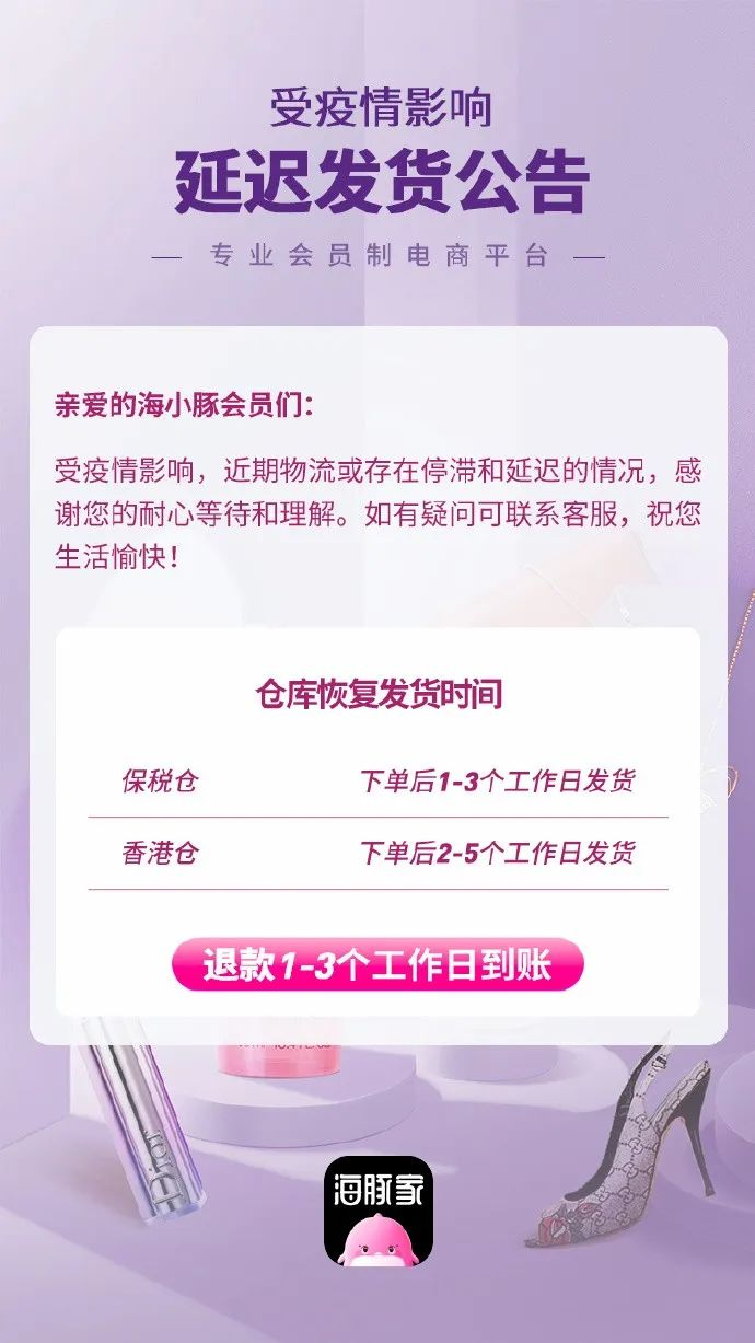 ▲海豚家2月3日在官方微博发布延迟发货公告,表示保证发货